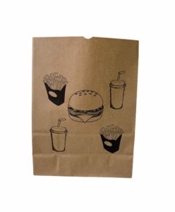 Este conjunto conta com 100 unidades avulsas de Sacolas de Papel Kraft no Tamanho G, na Cor Parda/Natural e sem impressão/personalização. Bastante utilizado para conduzir hambúrgueres, alimentos e refeições em geral.